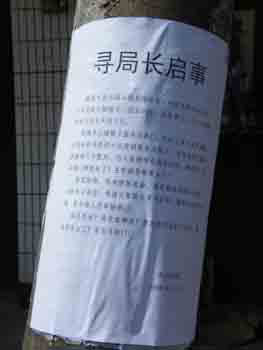 非常難,但并非不可能,我必須找到平衡點(diǎn)。幾經(jīng)思索,我終于想出了“尋局長啟事”的方式。我認(rèn)為:第一,啟事方式能使事件套上法律防撞墊,免于和“大字報(bào)”沾邊。第二,形式的新奇、幽默能吸引媒體介入,借以表達(dá)強(qiáng)烈民意。第三,在幽默搞笑的氣氛中完成對(duì)不作為官員的輿論威懾,更是一種讓強(qiáng)烈民憤的軟著陸,非常符合中國國情。
