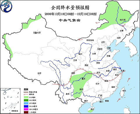 2008年12月18日8時(shí)—12月19日8時(shí)全國(guó)降水量預(yù)報(bào)圖