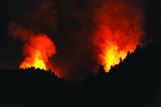 昨日凌晨1時(shí),記者連夜趕到三口鄉(xiāng)華湘村時(shí),遠(yuǎn)遠(yuǎn)就看見山上火光沖天。