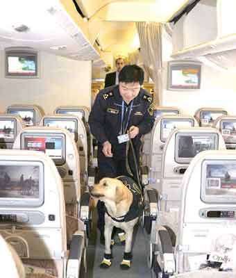 北京海關(guān)今日(13日)透露,今后,緝毒犬登機(jī)查毒將正式成為北京海關(guān)口岸緝毒的新手段。目前,兩條名叫“維特”和“泰格”的拉布拉多緝毒犬已完成了在首都機(jī)場(chǎng)T3航站樓進(jìn)行的首次緝毒犬登機(jī)演練。