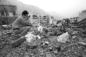 臘月二十三到年三十,是北川傳統(tǒng)的祭拜親人的日子,韓貴鈞介紹,為了滿足災(zāi)民希望到縣城祭拜親人的要求,他們決定北川縣城向當(dāng)?shù)鼐用耖_放,但必須在規(guī)定的道路上進行。有些危險區(qū)域,有武警把守和監(jiān)督。