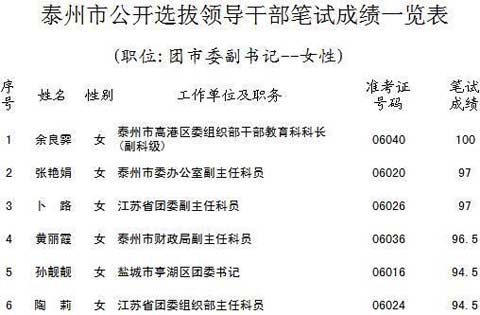 平心而論,這位靚靚同學(xué)的工作應(yīng)該是不錯(cuò)的。在某網(wǎng)站論壇上,網(wǎng)友“木有下文”貼出了“泰州市公開(kāi)選拔領(lǐng)導(dǎo)干部筆試成績(jī)一覽表”,孫靚靚以94.5分居第五名,但在其它考核中她迎頭趕上,最終奪得泰州市團(tuán)市委副書(shū)記一職。該網(wǎng)友還提供了一份網(wǎng)上資料,“孫靚靚是作為江蘇省委組織部2006屆選調(diào)生被選為預(yù)備干部的。按國(guó)家的有關(guān)規(guī)定,各單位的選調(diào)生一般都作為黨政領(lǐng)導(dǎo)干部后備人選和縣級(jí)以上黨政機(jī)關(guān)高素質(zhì)的工作人員人選,而在上調(diào)之前基本上都會(huì)放在基層煅煉!