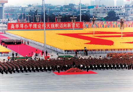 在開國大典那一天,這支年輕的軍樂隊用大部分從敵人手中繳獲的樂器(當天甚至連圓號都沒有),演奏了《東方紅》、《義勇軍進行曲》、《中國人民解放軍進行曲》、《騎兵進行曲》、《青年進行曲》等充滿民族色彩的樂曲,他們連續(xù)站立演奏了近4個小時,直到群眾游行結(jié)束。