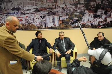 中新網(wǎng)2月23日電 據(jù)中國(guó)外交部網(wǎng)站消息,2月22日,中國(guó)與阿爾及利亞正式開(kāi)通北京—阿爾及爾直飛航班。中國(guó)駐阿大使劉玉和、阿外交部亞大總司司長(zhǎng)、交通部航空局局長(zhǎng)等阿官員及部分駐阿中資機(jī)構(gòu)代表等作為貴賓一道乘首航班機(jī)前往北京。行前劉大使和阿航總裁阿卜杜拉共同接受了新華社、阿新社、阿電臺(tái)等媒體采訪。