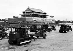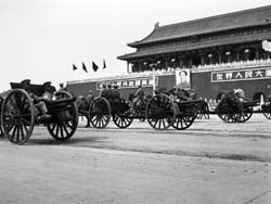 曾參與新中國多次國慶閱兵的北京軍區(qū)原炮兵司令部處長張軍告訴記者,開國大典受閱炮兵部隊裝備,全是從日本侵略軍和國民黨軍隊手里繳獲的戰(zhàn)利品,其中參加閱兵的90野炮和38野炮,不僅身管短,兩個輪子有的還是木輪子包鐵皮的。盡管當時我軍武器裝備還很落后,但場面恢宏、壯觀,大氣磅礴,全體受閱將士以昂揚精神狀態(tài)、威武雄壯陣容出現(xiàn)在國人面前,并向世界發(fā)出了宣言:中國人民解放軍有信心、有能力保衛(wèi)新生的人民政權(quán)!正因為如此,開國大閱兵具有極為重要的歷史意義。
