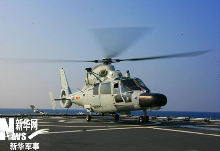 3月2日,隨海軍“廣州”號導(dǎo)彈驅(qū)逐艦赴巴基斯坦參加“和平-09”海上多國聯(lián)合軍演的艦載直升機(jī),在印度洋進(jìn)行了參演前的直升機(jī)飛行訓(xùn)練。