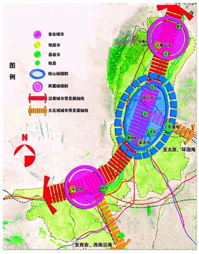 近年來,寧夏回族自治區(qū)黨委、政府確定了向黃河靠攏的發(fā)展思路,大力實施中心城市帶動戰(zhàn)略。2008年,寧夏進(jìn)入了城市化加速發(fā)展時期,全區(qū)城市化率達(dá)到45.5%,人均GDP超過2000美元,對經(jīng)濟(jì)社會發(fā)展的推動作用日益凸顯。目前,寧夏沿黃河分布的銀川、石嘴山、吳忠、中衛(wèi)、平羅、青銅峽、靈武、賀蘭、永寧、中寧10個城市以43%的國土面積,集中了寧夏全區(qū)57%的人口、80%的城鎮(zhèn)、90%的城鎮(zhèn)人口,創(chuàng)造了寧夏90%以上的GDP和財政收入,已初具城市帶雛形。今后,寧夏將全面推進(jìn)這一地帶的城市化進(jìn)程,著力打造生命保障線、搶險交通線、經(jīng)濟(jì)命脈線、特色城市線、生態(tài)景觀線和文化展示線。加快公交互通、金融同城、電訊同區(qū)、電力同網(wǎng)、信息共享步伐,形成以首府銀川市為中心的“一小時經(jīng)濟(jì)圈”,以石嘴山市、中衛(wèi)市、吳忠市三個沿黃地級市為次中心的“半小時通勤圈”,促進(jìn)中部干旱地區(qū)和南部山區(qū)10個縣(區(qū))的人口向沿黃地區(qū)聚攏。
