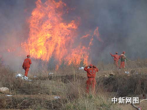 中新網(wǎng)5月2日電(增平)山西省交城縣會立鄉(xiāng)翟家莊村二十八日下午發(fā)生的森林火災蔓延至今。今日上午,林區(qū)現(xiàn)場明火一度被撲滅。十二時左右,一陣大風中突然引起余火復燃,青羊溝村附近和后莊的森林山火情緊急,現(xiàn)場形勢又顯嚴峻。千余人又投入緊張的現(xiàn)場撲火行動中。