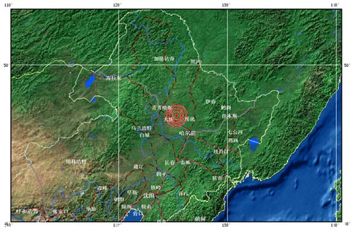 中新網(wǎng)5月11日電 據(jù)黑龍江地震臺網(wǎng)測定,北京時間2009年5月10日22時47分,在黑龍江省綏化市安達(dá)市太平莊鎮(zhèn)(北緯46.8,東經(jīng)125.3)發(fā)生4.5級地震。