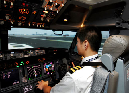 我們的訓(xùn)練都是在模擬機上完成的。主要是針對起飛時一臺發(fā)動機失效、著火及飛脫,空中的部分操縱系統(tǒng)故障,高空的發(fā)動機故障,座艙急劇釋壓,著陸時部分起落架不能放下等。比如遇上湍流,飛行員首先會把飛機速度降低到穿越顛簸區(qū)域的速度,將發(fā)動機的“點火開關(guān)”扳到“連續(xù)點火”,防止發(fā)動機熄火。有時還需要斷開“自動駕駛儀”人工飛行。