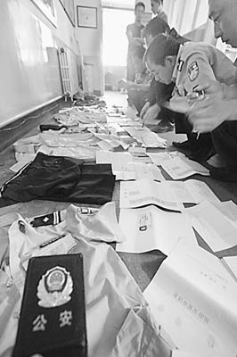 民警在搜查周某暫住在天平營村的住所時(shí),查獲了偽造的內(nèi)蒙古自治區(qū)公安廳廳長令、調(diào)函,警用人員報(bào)告書、成立派出所報(bào)告書、安置卡,購買了警服、警號(hào)、警銜、警官證和法律法規(guī)書和私刻的公章以及冒充自治區(qū)公安廳某領(lǐng)導(dǎo)簽署的調(diào)他任薛家灣公安局局長的調(diào)令等大量假證件。(本報(bào)記者 李玉波)