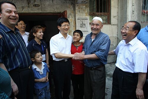 烏魯木齊市天山區(qū)團(tuán)結(jié)西社區(qū)是一個維吾爾、哈薩克、蒙古和漢族等多民族和睦相處的社區(qū)。孟建柱先后來到鄒德敬和巴合提亞爾等居民家中走訪看望,并與在樓前樹陰下乘涼的社區(qū)居民談心,了解他們的生活狀況,傾聽他們的心聲,面對面地講道理、做工作。社區(qū)群眾真情訴說在美麗富饒的新疆各族人民和睦相處、共同發(fā)展的樁樁事例,紛紛聲討民族分裂分子的無恥行徑,強(qiáng)烈要求嚴(yán)懲兇手,維護(hù)幸福安康的生活。