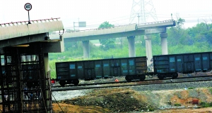 本報(bào)訊 匝道坍塌后,橋下的李港鐵路雙向中斷。經(jīng)搶修,昨日鐵路雙向通車(chē)。