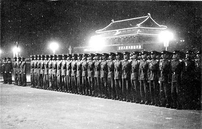受檢的時刻終于來臨。1958年9月30日下午,我們“湘軍方隊”停止了訓練,轉(zhuǎn)入受閱時的著裝和衛(wèi)生準備,熨衣服、擦皮鞋、縫襯肩、釘領花、安肩章、洗澡、理發(fā)、刮胡須忙個不停。下午5時,大家都穿上受閱著裝列隊檢查,全隊人員配帶的肩花都是中尉或上尉,這些平時曬得黑油油顯得有些老成粗放的“老兵”,一下子變得年青、標致、威武了;在激動心情的催促和新式著裝的反光照耀下,每個人的臉面變得白中帶紅、可親可愛了。