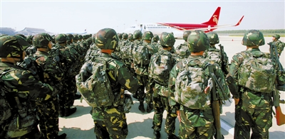 今天(1日)上午11時(shí)30分,沈陽(yáng)桃仙機(jī)場(chǎng),沈陽(yáng)軍區(qū)某摩步師150名官兵和17臺(tái)裝備組成的先期偵察戰(zhàn)斗群,搭乘一架客機(jī)和一架貨機(jī)向大西北出征。隨后,該師萬(wàn)人千車將采取鐵路輸送、摩托化開進(jìn)兩種機(jī)動(dòng)方式跟進(jìn),從東北渤海之濱直撲西北賀蘭山麓。至此,“跨越—2009·青銅峽”實(shí)兵檢驗(yàn)性演習(xí)正式拉開戰(zhàn)幕。