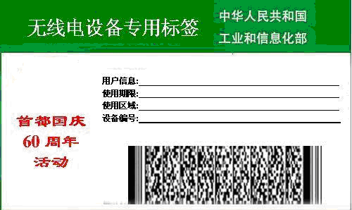 第五條 進(jìn)入特殊控制區(qū)域使用的無線電臺(tái)(站)和無線電發(fā)射設(shè)備,應(yīng)當(dāng)由工業(yè)和信息化部無線電管理局或者北京市無線電管理局進(jìn)行核驗(yàn),粘貼“首都國(guó)慶60周年活動(dòng)無線電設(shè)備專用標(biāo)簽”(具體樣式見附件,以下簡(jiǎn)稱專用標(biāo)簽),并在專用標(biāo)簽上注明的時(shí)間、區(qū)域內(nèi)使用。