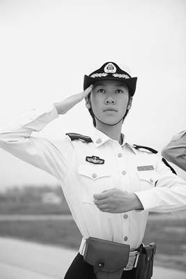 領(lǐng)隊(duì)是方隊(duì)的核心,訓(xùn)練中,她付出比普通隊(duì)員更多的努力。那一聲氣貫長虹的“向右看”,對魏韻蕭來講,就是不小的挑戰(zhàn)。作為女孩子,平時(shí)說話習(xí)慣柔聲細(xì)氣,可是身為領(lǐng)隊(duì)的魏韻蕭必須一改淑女形象,像男兵一樣扯著嗓子大聲下達(dá)口令,保證全方隊(duì)在嘈雜環(huán)境下都能聽見口令,確保整個(gè)方隊(duì)令行禁止、整齊劃一。