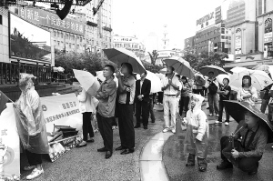 上海的大街小巷上午人車稀少,許多市民守在電視機(jī)前,觀看慶典和閱兵式。