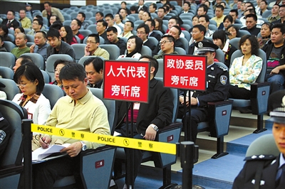在一中院庭審現(xiàn)場,有20余名市人大代表和政協(xié)委員坐在旁聽席上,他們是專門受邀進行現(xiàn)場監(jiān)督。據(jù)悉,起訴到各中院或上訴至市高院的重點“涉黑涉惡”案件的庭審均將邀請人大代表、政協(xié)委員現(xiàn)場監(jiān)督。