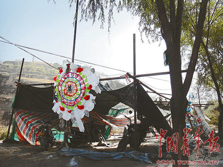 10月20日上午11時許,山西省呂梁市臨縣林家坪鎮(zhèn)白家峁村。村口不遠靠近公路的空地上,有幾個用棚布搭起的簡易帳篷,有的被燒得只剩下幾塊破布,在秋風(fēng)中無力地搖曳著。這是幾個月前村民為護礦搭起來的,現(xiàn)在成了村民郝兔照的靈堂。他的棺材已經(jīng)在這里放了8天,旁邊擺放著花圈、供品。