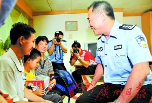 這天,他幸運地在干警幫助下找到自己的親生父母。