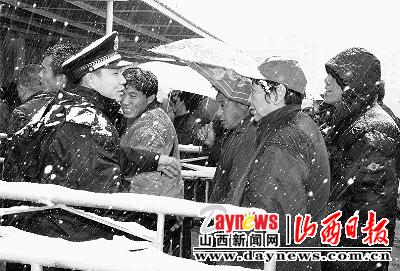 11月10日,一場暴雪給出行的人們帶來了不便。太原交警支隊迅速啟動冰、雪、霧惡劣天氣應(yīng)急預(yù)案,全警動員,全員上路,保障人們的出行安全。在大南門崗,太原市公安局副局長、交警支隊支隊長尹喜平在大雪中疏導(dǎo)著,并不時地喊話,提醒大家注意安全。杏花嶺交警大隊對轄區(qū)太原市東客站和太原市客運汽車公司駐站管理。古交交警大隊在三岔口和神堂巖執(zhí)勤點及早安排警力,實施交通管制……(記者曹秀娟)