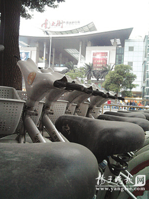“免費(fèi)自行車這兩天又少了個(gè)車座墊,這已經(jīng)是被盜的第四個(gè)座墊了!奔易〕V萸逄队裉m苑的倪小姐告訴記者,那些免費(fèi)自行車放在那很長時(shí)間都沒動(dòng)過了。因此那些車都那么臟了,車座墊、把手上全是灰。她認(rèn)為,“既然不租了,就該將車子移走!放在那多難看!彼說,像她這里是老小區(qū),本來就不大?纯茨切]用的自行車,又占了那么大塊地,實(shí)在可惜。