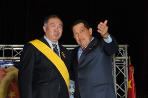 授勛儀式與整個大會一起由委內瑞拉各家電視臺、電臺向全國實況直播,現場千余名兩國政府官員、企業(yè)家、職工及委社會各界代表為即將離任的張大使受到總統直接嘉獎給予長時間熱烈鼓掌。