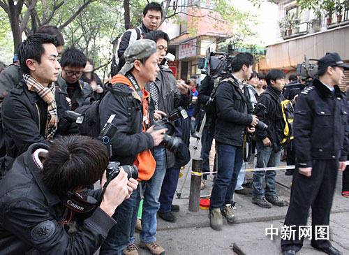 從早上7點(diǎn)開始,來自境內(nèi)外的各路記者便已經(jīng)在警戒頗嚴(yán)的重慶市第五中級(jí)人民法院門口守候,一些攝影愛好者也加入拍攝的隊(duì)伍,在很長一段時(shí)間里,在法庭外守候的記者多過圍觀的市民。記者看到,盡管法庭臨時(shí)增設(shè)加座,但也并非所有到場媒體能夠進(jìn)去旁聽,不少?zèng)]有拿到旁聽證的媒體記者仍然早早的來到法院門口,希望能采訪到現(xiàn)場新聞和更快的得到一些消息。