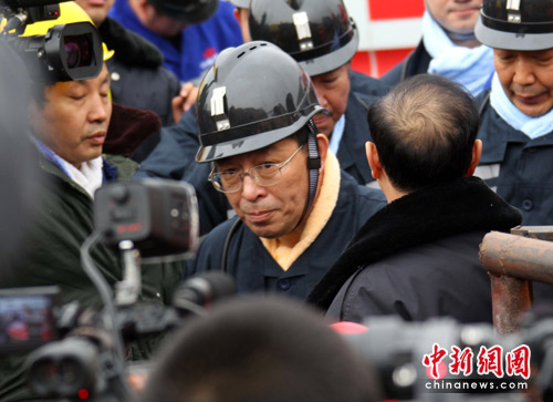 中新網(wǎng)河津3月31日電(張云)王家?guī)X礦透水事故搶險進入第四天,救援搶險仍在緊張進行。31日中午,國家安監(jiān)總局局長駱林,安全監(jiān)管總局副局長、國家煤礦安監(jiān)局局長趙鐵錘,山西省長王君下井視察搶險進度。