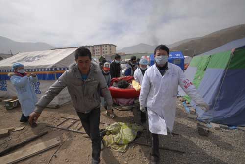 第一次遇到,在一個(gè)醫(yī)療帳篷前,他正和來自什邡的醫(yī)生一起抬著擔(dān)架向前飛奔,把重傷員轉(zhuǎn)移到救護(hù)車上;第二次遇到,在玉樹團(tuán)州委設(shè)立的志愿者報(bào)名處的小桌子前,他正用沙啞的嗓音呼喊著幾名志愿者去山區(qū)抬傷員。