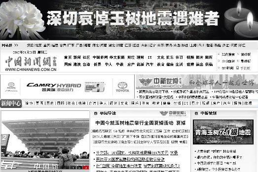 玉樹地震已過去數(shù)日,舉國上下對(duì)遇難同胞表示深切哀悼。中國國務(wù)院決定,2010年4月21日全國哀悼,全國和駐外使領(lǐng)館下半旗致哀,停止一切公共娛樂活動(dòng)。目前中國各大網(wǎng)站主頁都已更為灰色,各大網(wǎng)絡(luò)游戲服務(wù)器也都暫停,中國互聯(lián)網(wǎng)連同中華兒女致哀。