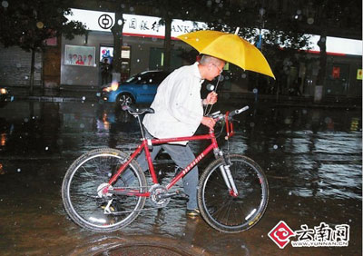 黑壓壓的烏云籠罩了昆明兩個小時之后,昨晚8點(diǎn),一場從去年9月以來最大的降雨光臨昆明。當(dāng)豆大的雨點(diǎn)落在昆明家家戶戶的窗戶上時,市民都興奮了。大家的感覺沒有錯,昨天晚上的那場降雨確實(shí)是干旱以來的最大一場。雖然降雨只持續(xù)了約一個小時,但是電閃雷鳴間,這場雨已經(jīng)完全澆濕了昆明城。