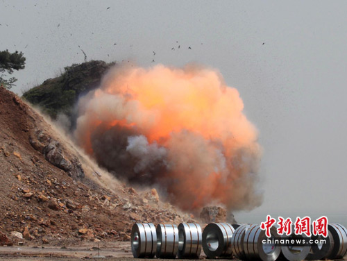 中新網(wǎng)九江4月28日電(胡國(guó)林 李濤淵)“一、二、三”,隨著一聲令下,4月27日中午,在江西九江都昌縣磯山湖附近一偏僻的時(shí)子山腳下,立即出現(xiàn)一個(gè)巨大的“火球”,原來(lái),這里正在實(shí)施銷(xiāo)毀日軍侵華時(shí)期遺留下來(lái)的炮彈。