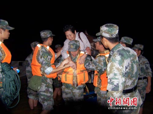 20日凌晨1時,南京軍區(qū)海防某部摩托行軍9個小時,從福清用17輛卡車帶著200多名官兵和沖鋒舟趕到建陽,一到就接受到首批任務(wù),分2批3個點營救建陽當(dāng)?shù)乇焕罕姟?/p>