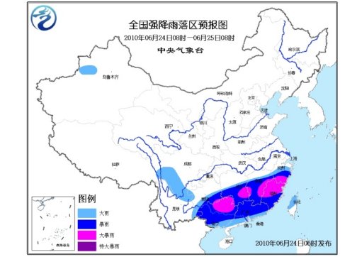 中新網(wǎng)6月24日電 中央氣象臺(tái)6月24日06時(shí)繼續(xù)發(fā)布暴雨黃色預(yù)警:預(yù)計(jì),6月24日08時(shí)到6月25日08時(shí),貴州南部、湖南中南部、江西大部、浙江中南部、福建、廣東大部、廣西等地有大到暴雨;廣西東北部、湖南東南部、江西中部偏東和中部偏西、浙江南部、福建中北部等地的部分地區(qū)有大暴雨;上述部分地區(qū)并伴有短時(shí)雷雨大風(fēng)等強(qiáng)對流天氣。