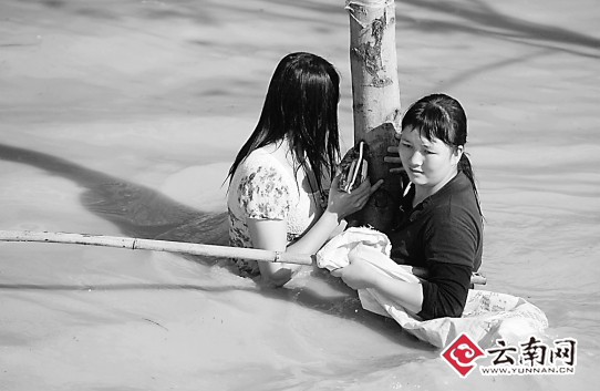 水中,許多孩子正卷起褲腳在玩耍,完全不知道這場災(zāi)害的后果。據(jù)大龍井村黨小組書記秦萬福說,此次遭遇的暴雨是百年難遇的,村里面80多歲的老人都是從來未遇見過。昨日上午9時(shí),聽說附近的龍泉水庫有可能決堤后,整個(gè)村寨近1500多名男女老少來不及做任何事情,在村干部的組織下,用摩托車等能派上用場的車輛,趕緊把村民撤離到了山頂上。