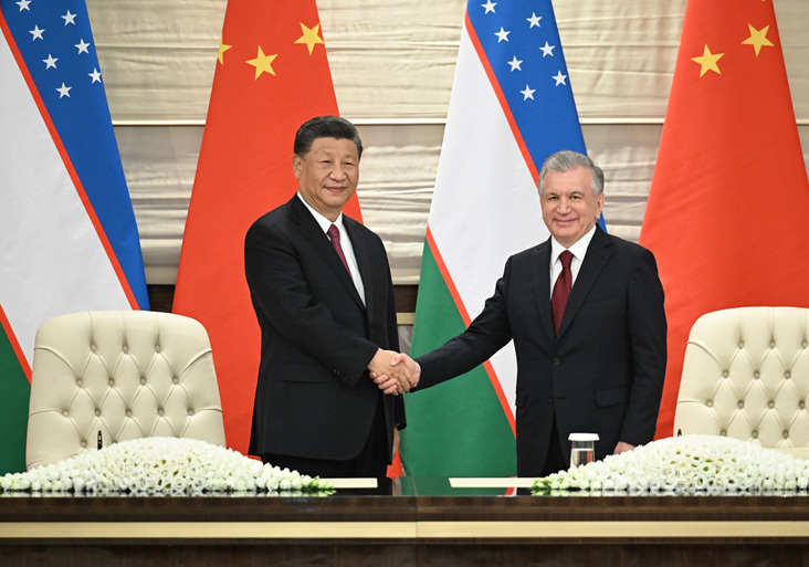 | 習(xí)近平于當(dāng)?shù)貢r(shí)間15日應(yīng)邀同烏茲別克斯坦總統(tǒng)米爾濟(jì)約耶夫共同種下一棵橡樹,以此象征中烏友誼枝繁葉茂、生生不息的延續(xù)。 |