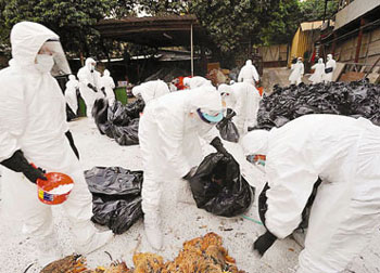 漁護署、衛(wèi)生署與食環(huán)署9日下午舉行禽流感督導委員會會議,香港食物及衛(wèi)生局局長周一岳會后會見記者時稱,因應在香港農場發(fā)現(xiàn)禽流感病毒,決定把香港禽流感的戒備應變級別提升至嚴重級別,并把肇事雞場列為疫點,雞場方圓3公里范圍內列為疫區(qū),須銷毀疫區(qū)內所有雞只,涉及2個雞場共8萬只活雞。