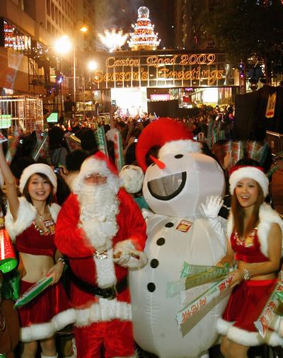 為了吸引更多人流,大小商場均出盡法寶,除了五光十色的圣誕裝飾,一些打扮趣怪的圣誕老人、性感圣誕女郎、魔術(shù)師都空群出動,在商場客串亮相,增添了不少節(jié)日氣氛。由于人流眾多,各大商場門外的車站都大排長龍,簡直可以用萬人空巷來形容。