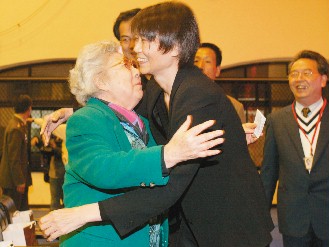 周美青與當(dāng)年教她的老師熱情擁抱。(來(lái)源:臺(tái)灣《聯(lián)合報(bào)》)