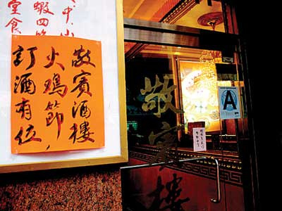 據(jù)敬賓酒樓的業(yè)者介紹,雖然近日才貼出告示,但火雞節(jié)宴席的預(yù)訂其實(shí)早在一年前就開始,目前僅中午12點(diǎn)開始的早場還有桌位可供預(yù)訂,下午3點(diǎn)開始的午場和晚上6點(diǎn)開始的晚場宴席早就一搶而空。在閩籍鄉(xiāng)親集中的小區(qū),每年的感恩節(jié)都是酒樓生意最旺的時(shí)候,去年感恩節(jié)敬賓酒樓所接做的宴席便逾100場。