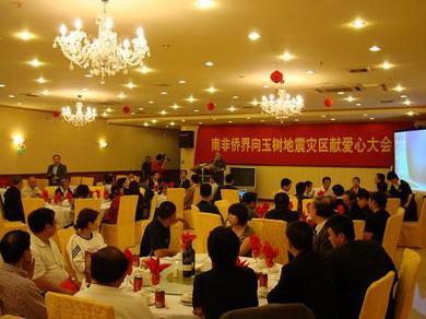 會上,吳少康會長帶頭捐款,當場個人捐贈12萬蘭特(南非貨幣單位),著名愛國老華僑李鏗發(fā)先生捐款20萬蘭特,知名老華僑梁職臣先生(以無名氏名義)、南部非洲中華福建同鄉(xiāng)總會和南部非洲上海工商聯(lián)誼總會各捐款10萬蘭特,南部非洲上海世博會推委會主席曹行知先生、南部非洲華僑華人工商聯(lián)合總會和南部非洲粵港澳總商會各捐款8萬蘭特,全非洲華人女企業(yè)家工商聯(lián)合總會、南部非洲吉林總商會、南部非洲中原總商會、南非江蘇省同鄉(xiāng)會和南非紫荊會等20多個僑團及其僑領也都分別以僑團或個人的名義踴躍捐款,爭相表達對災區(qū)人民的關愛之情。當日,總計為地震災區(qū)捐款達到138萬另8千蘭特(R1,388,000元)。