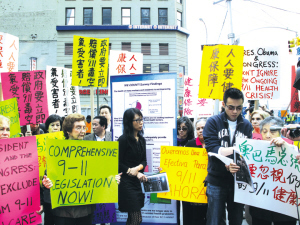 當(dāng)天有不少華人職工會的會員到場聲援,華人職工會也是超越姐妹樓聯(lián)網(wǎng)的組成者之一,居住在下東城的伍嬸代表發(fā)言,她說過去8年來華埠及下城的居民健康仍然被忽略,受到各種疾病的折磨,她與孫女于911后受毒空氣影響,她的肺部出現(xiàn)黑點、孫女患上哮喘,然而政府卻一直不肯正視有關(guān)問題。
