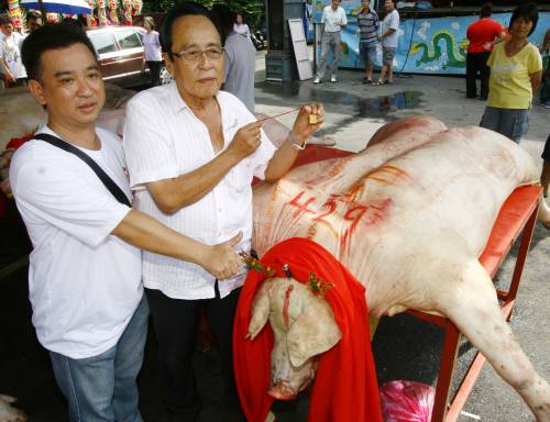 他說(shuō),由于早前附近都是從事養(yǎng)豬業(yè),生豬大賽旨在聯(lián)誼居民,讓大家促進(jìn)交情。祭拜儀式完畢后,所有的生豬將全數(shù)切割分發(fā)給民眾。