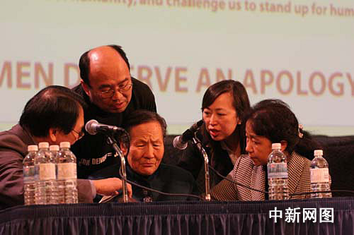 出席聽證會的四位“慰安婦”幸存者均年逾八旬,分別是來自中國山西的劉面換、韓國的Jang Jum-Dol、菲律賓的Fedencia David 以及荷蘭的Ellen van De Ploeg。在會上,她們以自己的親身經(jīng)歷講述淪為日軍性奴的辛酸故事。劉面換老人在作證中更數(shù)度哽咽,泣不成聲,令現(xiàn)場的聽眾動(dòng)容。