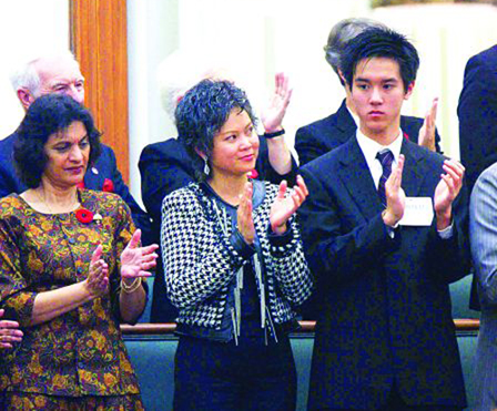 中新網(wǎng)11月1日電 據(jù)加拿大《明報(bào)》報(bào)道,競選連任成功的加拿大安省省長麥堅(jiān)迪10月30日率領(lǐng)新內(nèi)閣宣誓就任。華裔省議員陳國治再上層樓,被麥堅(jiān)迪委以重任,出任安省公民及移民廳廳長,成為安省內(nèi)閣的一名重要成員。陳國治在宣誓就任的儀式結(jié)束后向中文媒體表示,感謝省長給他這個(gè)機(jī)會(huì),可以為安省的新移民、新公民服務(wù)。