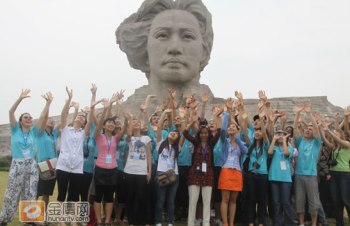 12日下午,54名來(lái)自世界各地的第九屆漢語(yǔ)橋世界大學(xué)生中文比賽的選手來(lái)到長(zhǎng)沙著名的景點(diǎn)橘子洲,為第九屆漢語(yǔ)橋比賽拍攝宣傳片。