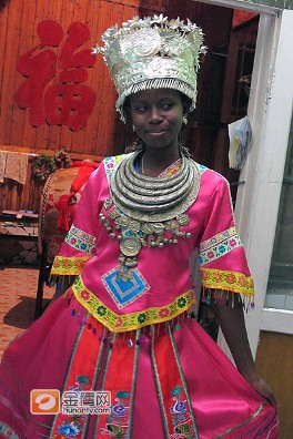 當(dāng)晚,在熱情的中國(guó)家長(zhǎng)帶領(lǐng)下,漢語橋選手“黑珍珠”闖三關(guān):對(duì)山歌、喝米酒、擊鼓后,順利入住苗家,當(dāng)穿上苗族服裝,“黑珍珠”興奮地在鏡子面前轉(zhuǎn)了幾圈,表達(dá)喜悅的心情。(李湘)