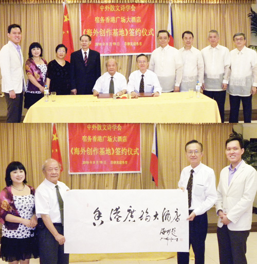 在何時(shí)敬和宿霧華社人士的共同見(jiàn)證下,中外散文詩(shī)學(xué)會(huì)與菲律賓宿霧香港廣場(chǎng)大酒店于19日晚,簽署了創(chuàng)設(shè)“中外散文詩(shī)學(xué)會(huì)海外創(chuàng)作基地”的協(xié)議。